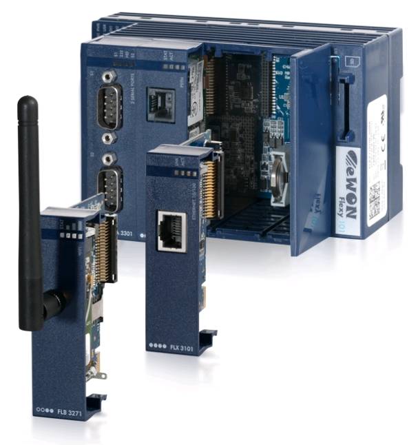 It is compatible with the Ewon Flexy 10x series, 20x series and 205.