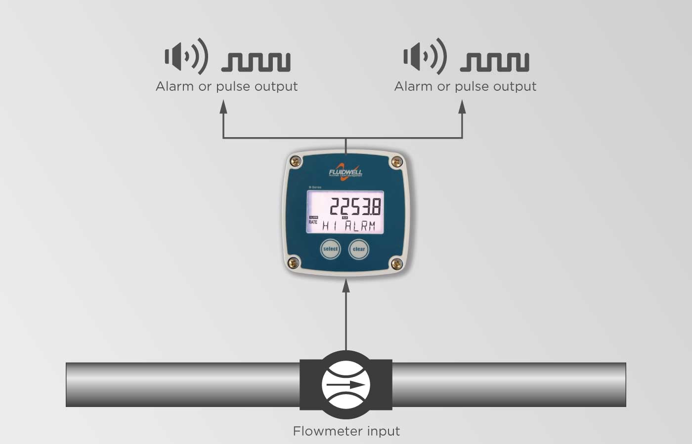 The B-Alert is a flow rate (flow) indicator and totalizer with continuous flow monitoring function. It allows you to set one low flow alarm value and one high flow alarm value. The display shows flow, total, accumulated total and alarms. On-screen engineering units are easy to configure from a wide selection.