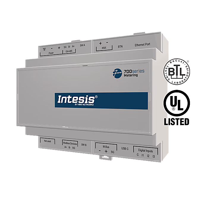 Intesis IN702MEB1000000 gateway M-Bus, Modbus, Digital pulses to BACnet/IP, BACnet MS/TP, KNX or Modbus RTU/TCP