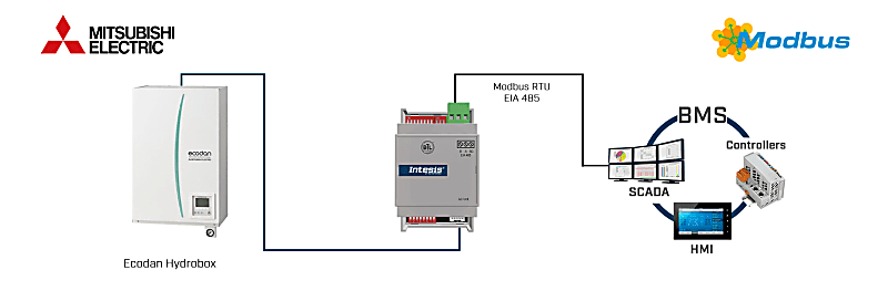 Mitsubishi Electric Ecodan lucht-water warmte pompen naar Modbus RTU