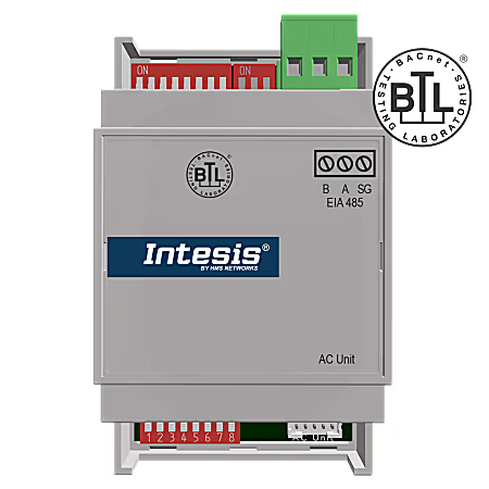 - De gateway krijgt zijn stroom rechtstreeks van de AW-eenheid en maakt een eenvoudige BACnet-configuratie mogelijk met behulp van DIP-schakelaars.