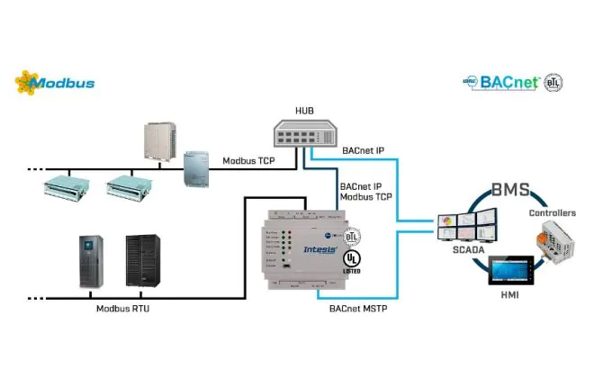 Integreer elk Modbus RTU- of TCP-serverapparaat, of beide tegelijk, met een BACnet BMS of een BACnet IP- of BACnet MS/TP-controller. Het doel van deze integratie is om Modbus-systeemsignalen en -bronnen toegankelijk te maken vanaf een op BACnet gebaseerd besturingssysteem of apparaat, alsof het een onderdeel is van het eigen BACnet-systeem en vice versa.
